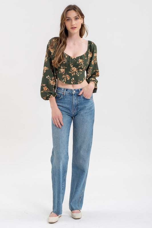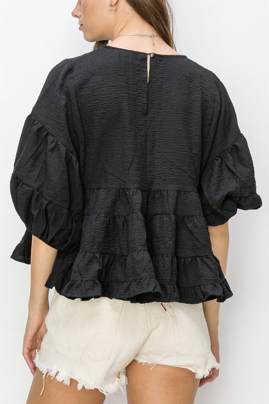 Aemi + Co Eyelet Embroidered V-Neck Half Sleeve Peplum Blouse