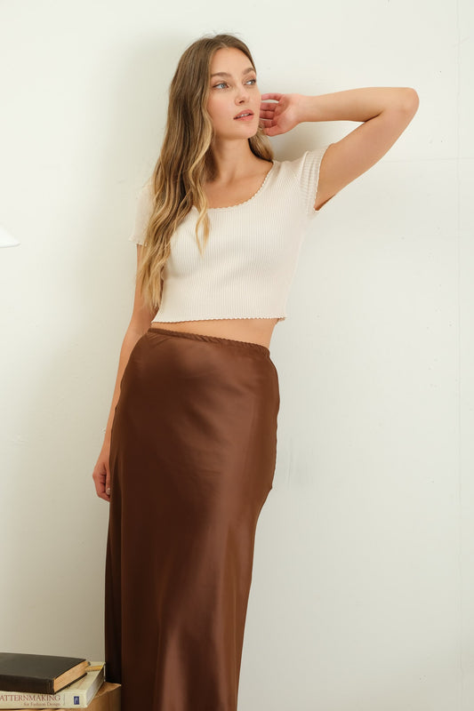 MABLE Embroidered Short Bubble Sleeve Crop Top