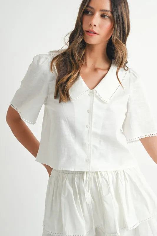 MABLE Long Sleeve Scallop Blouse and Shorts Set