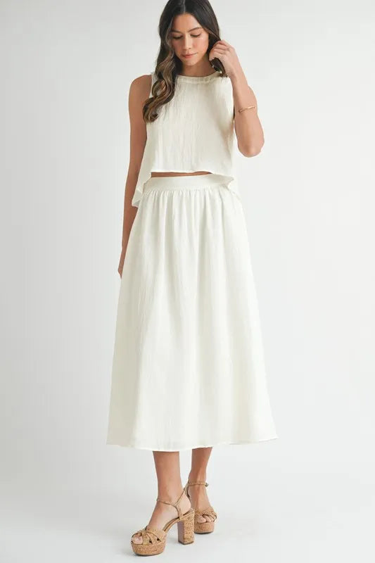 MABLE Wrinkled Round Neck Swing Top and Skirt Set