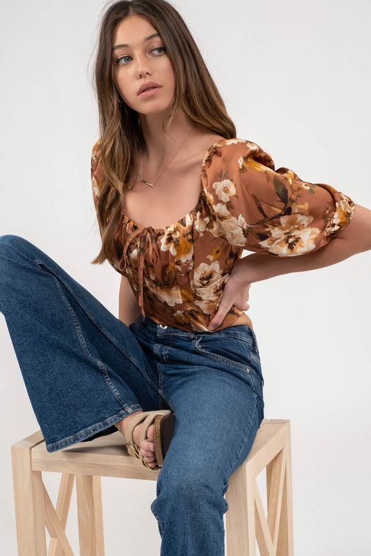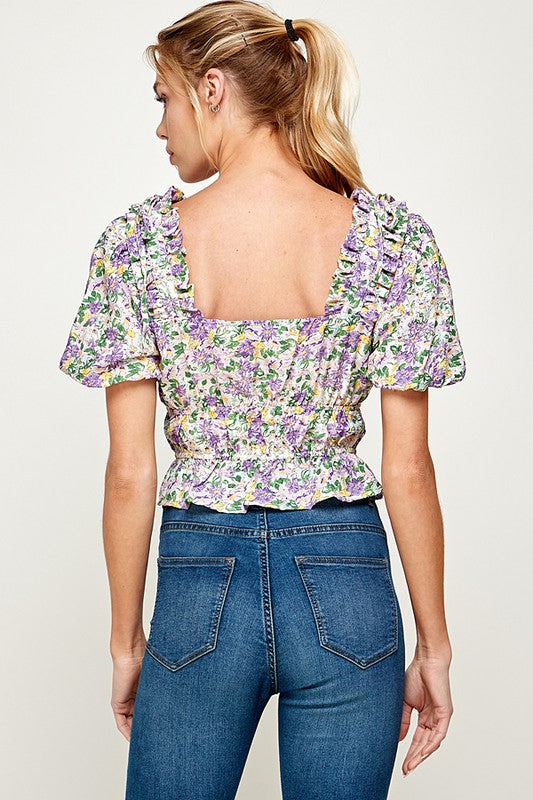 Sold outFLORAL PRINT TIE-FRONT CROP TOP