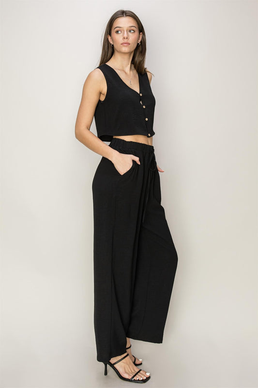 Sold outBUTTON-FRONT TOP AND PANTS SET