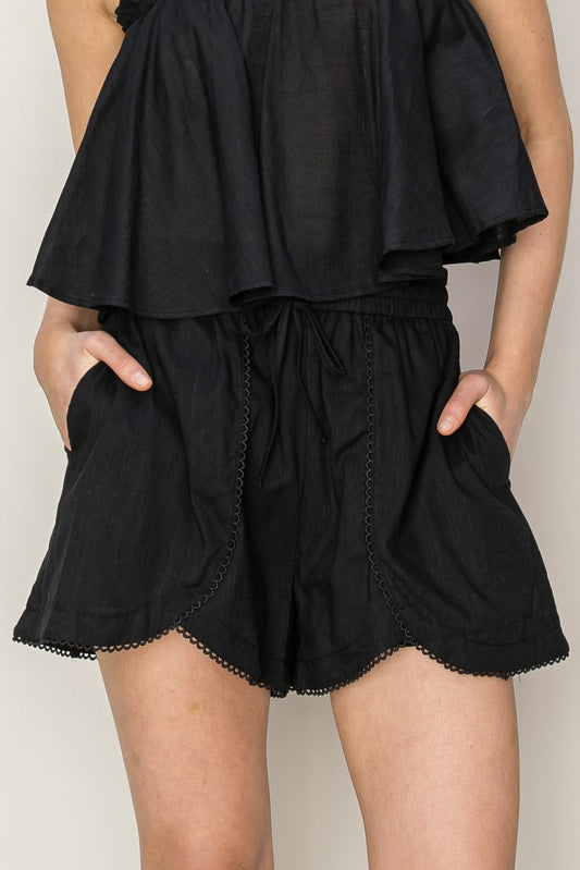 HIGH-WAIST EYELET-DETAILED SHORTS