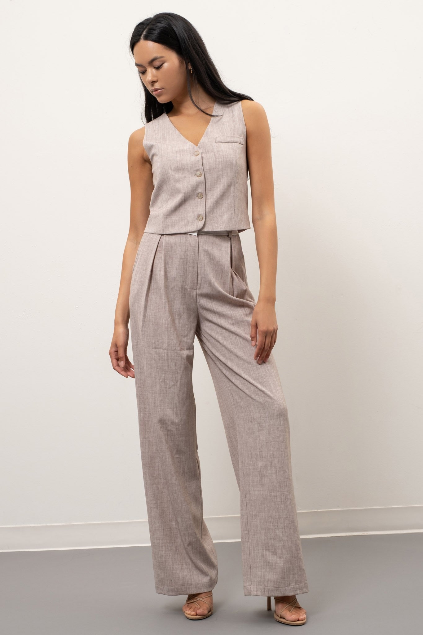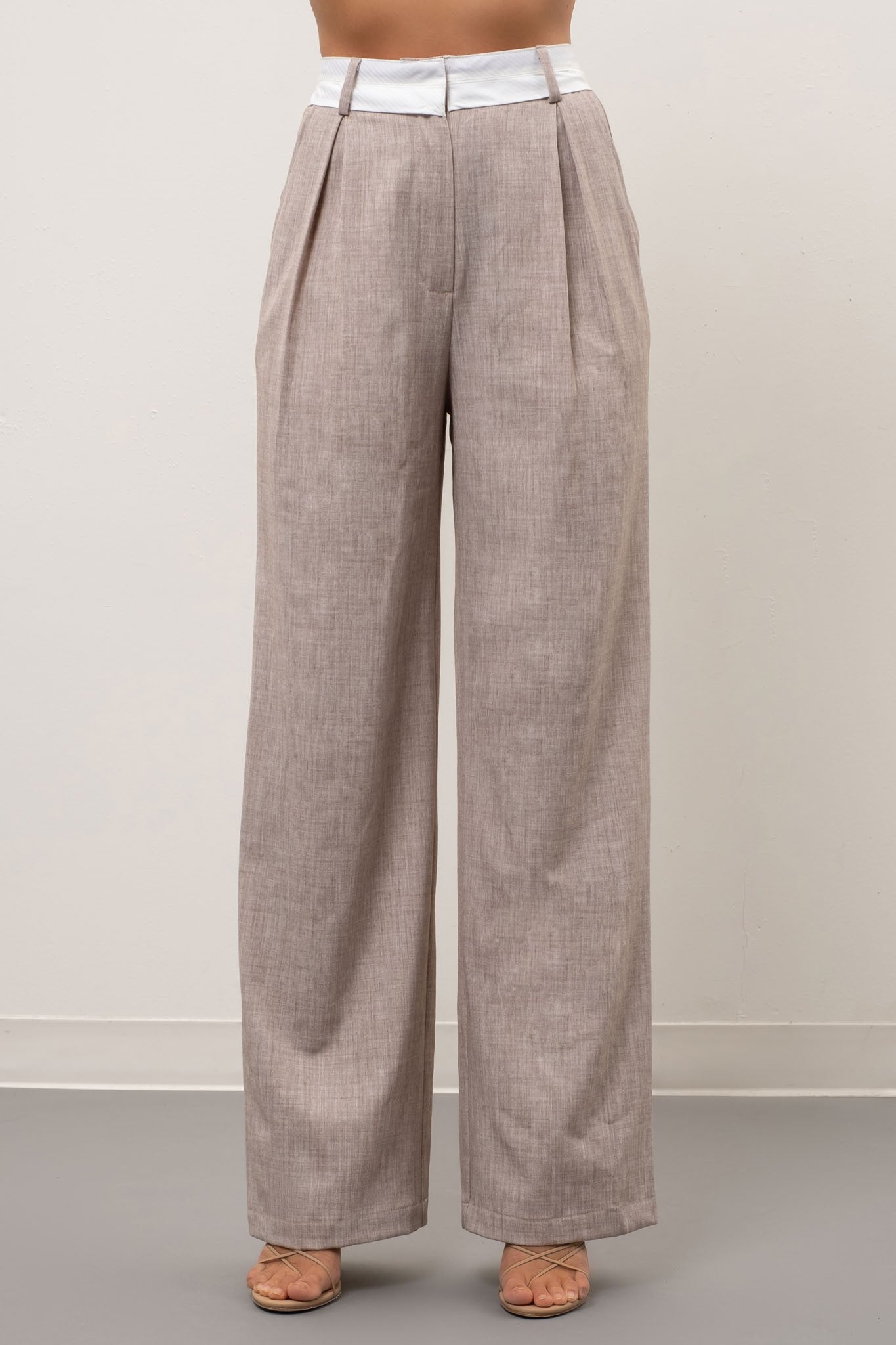 Spread out in these groovy wide leg pants in a delicious oatmeal hue! Show off your playful side with a contrasting waist detail, and if you're feeling daring, pair it with the matching vest (sold separately). Stay chic and comfortable at the same time, because why choose when you can have both?