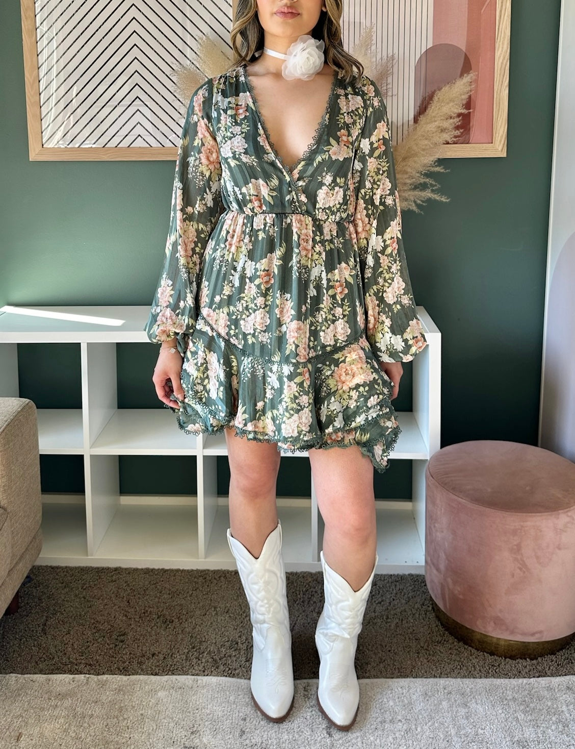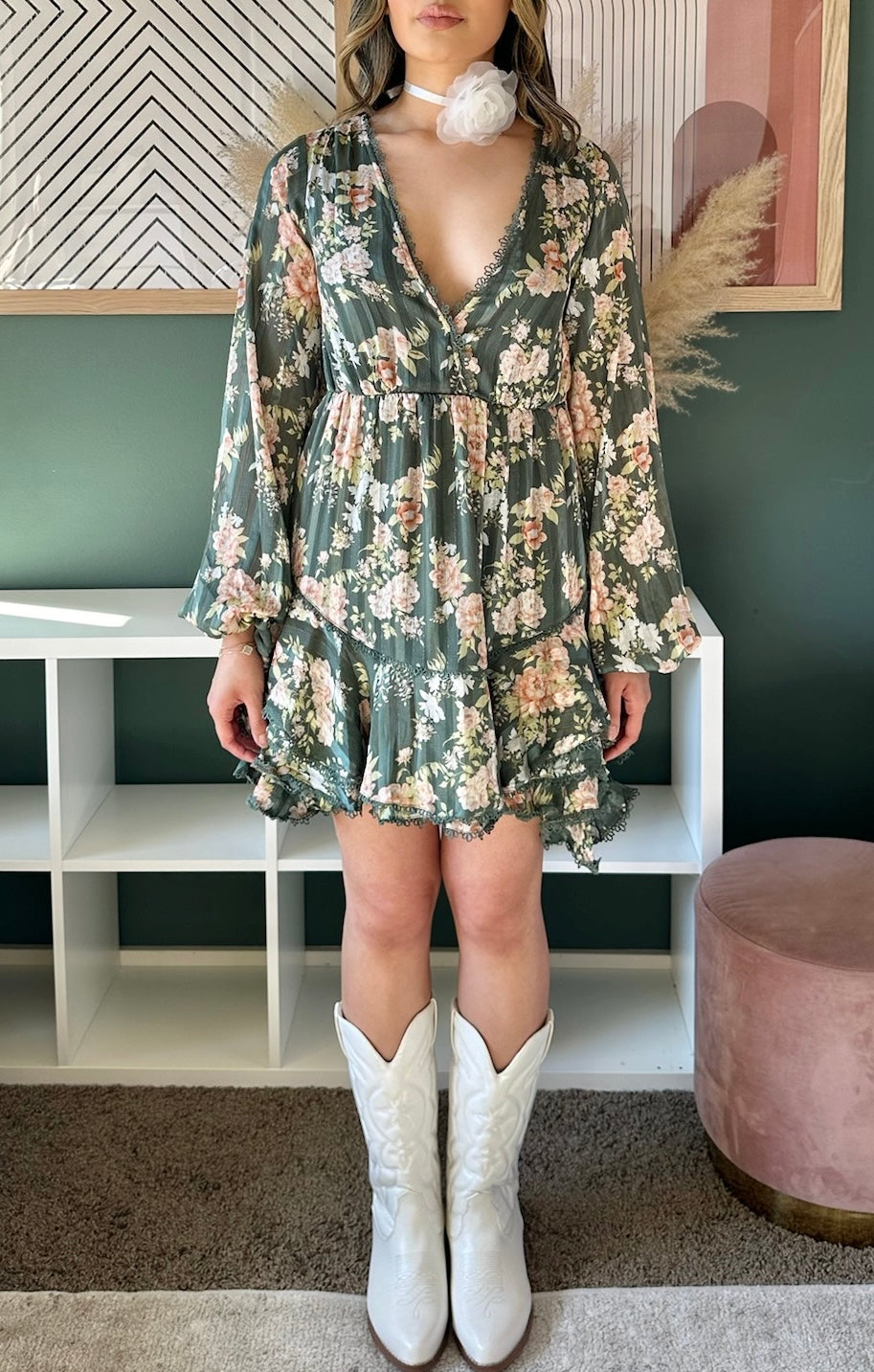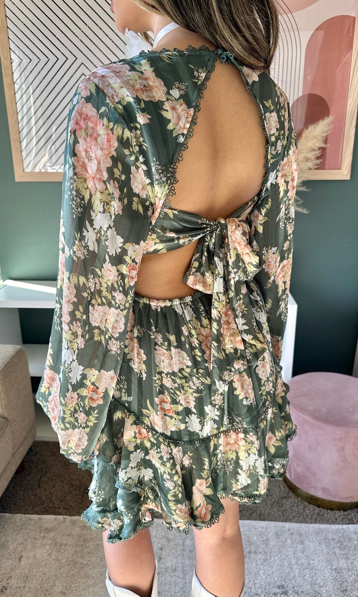 Step into spring with our stunning Green Floral Dress! Featuring a pretty green floral print, a chic backless design with a tie, and a flirty ruffled hem, this dress is perfect for any occasion. Elevate your wardrobe with this must-have piece today!
