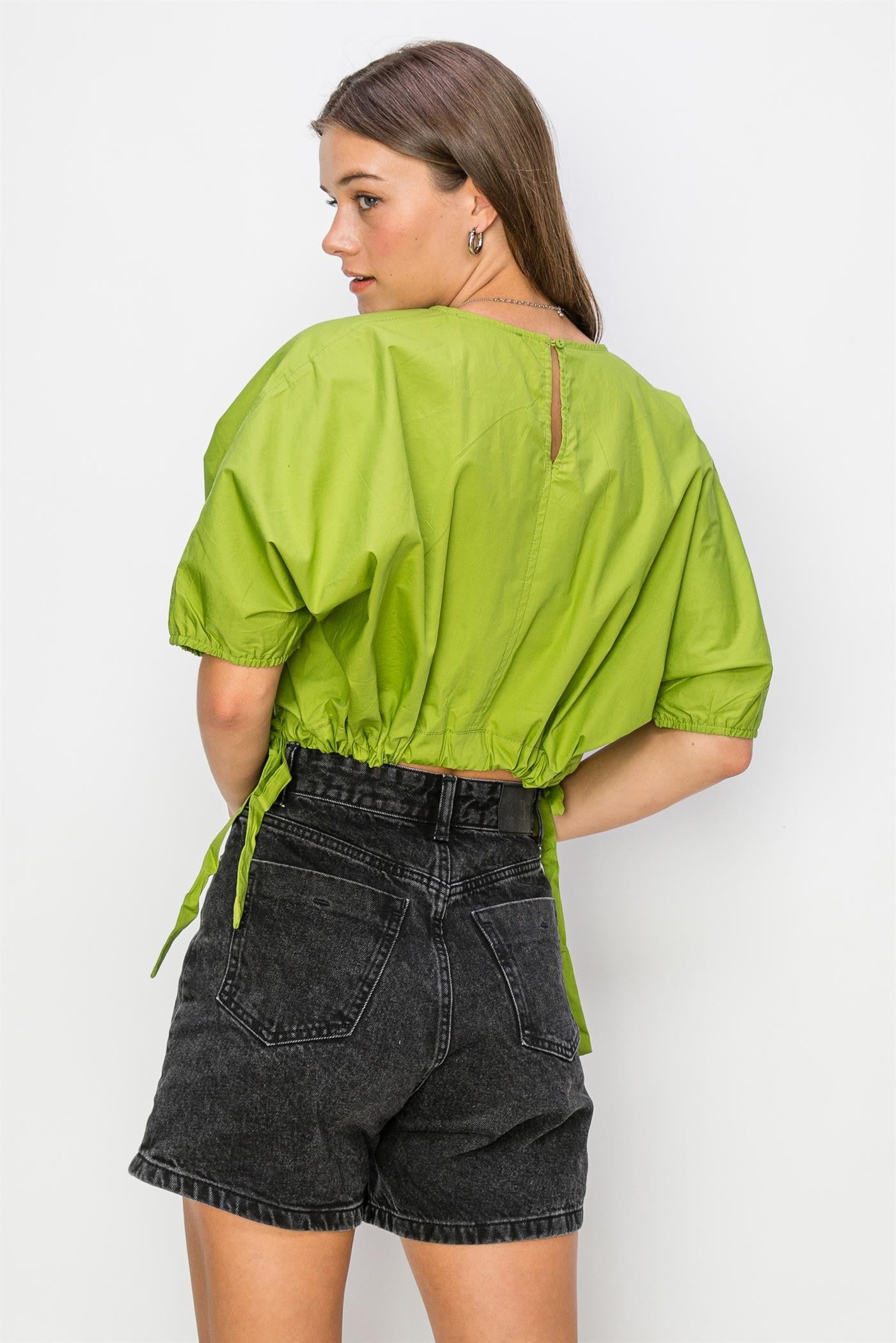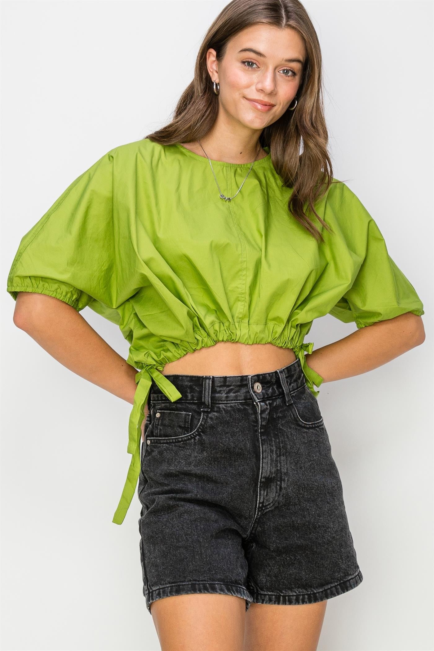 Get ready to fall in love with our Poplin Drawstring Crop Top! Made from a breathable poplin fabric, it features a crew neck and trendy elbow-length batwing sleeves. The relaxed fit and drawstring waist accentuate your figure for a flattering look. Perfect for any occasion, this top will become a staple in your wardrobe.